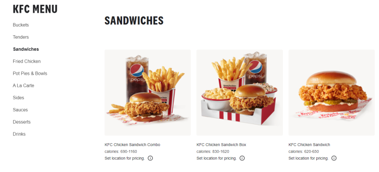 KFC의 공식 홈페이지를 가도 샌드위치는 있으나 버거(Burger)는 없습니다.