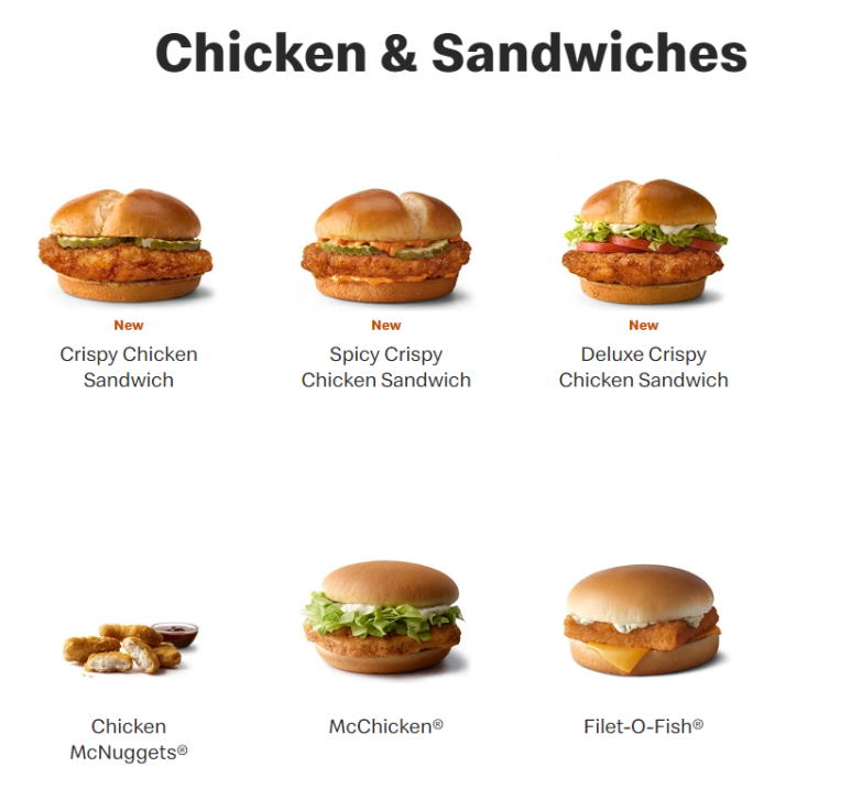 맥도날드의 미국 홈페이지를 가면 치킨버거 메뉴는 일반 소고기 패티랑 분리가 되어 치킨&샌드위치에 있습니다.